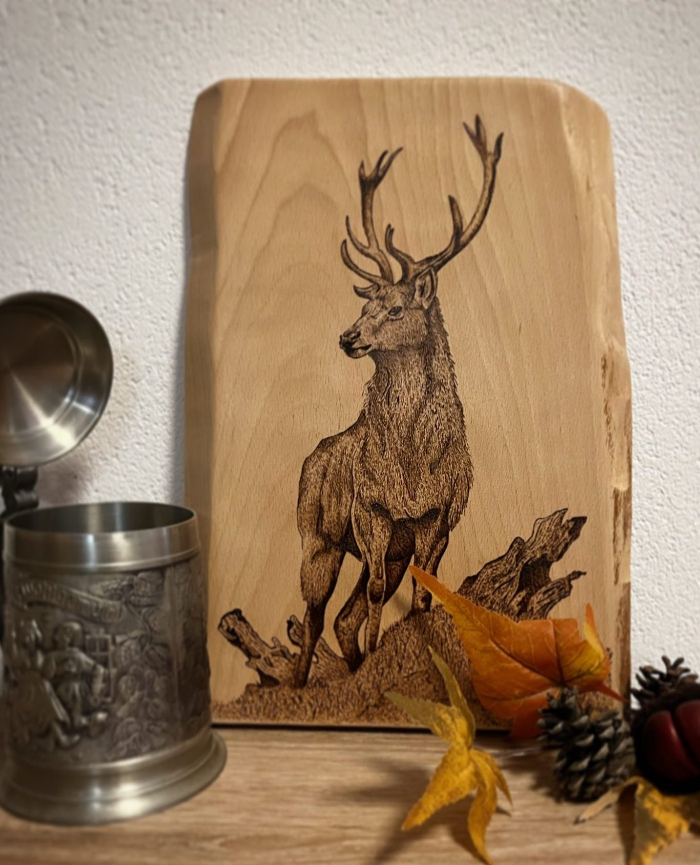 Jedes unserer Holzbretter wird von Hand gebrannt, um ein einzigartiges Kunstwerk zu schaffen.