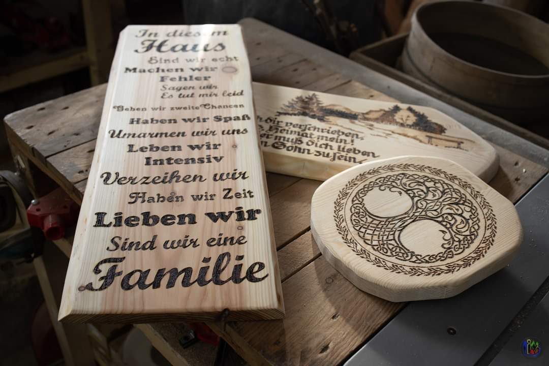 Bei Gebrannte Holzkunst bieten wir unseren Kunden individuell gebrannte Holzbretter mit verschiedenen Motiven und Schriftzügen.